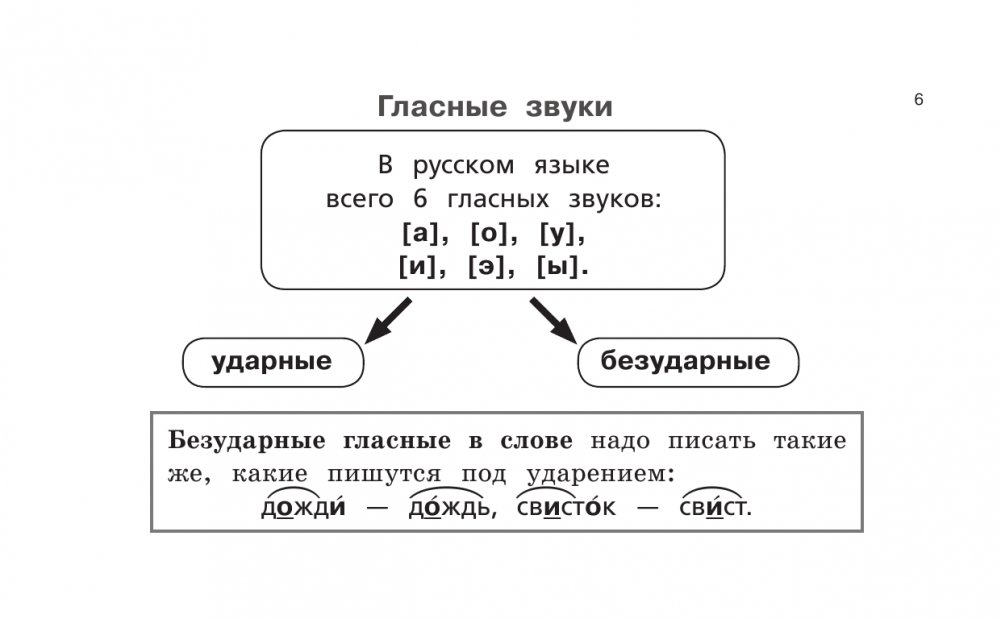 Пособие включает в себя основные правила русского языка, изучаемые в начальной школе: "Звуки и буквы", "Слово и части слова", "Словосочетание", "Предложение", "Части речи", а также все виды разбора слов, частей речи и предложений.
