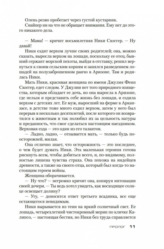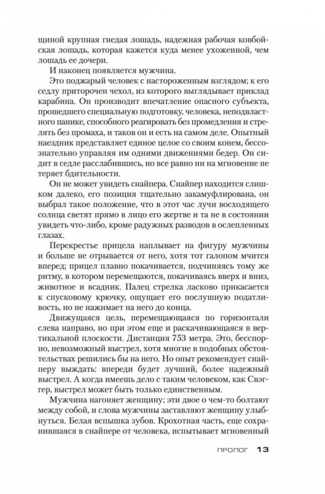 Трагедия разыгралась в последние дни Вьетнамской войны. Донни Фенн, морпех армии США, гибнет от пули снайпера, а его напарник, Боб Свэггер, получает тяжелое ранение. Прошли годы, Боб женится на Джулии, вдове погибшего друга, они воспитывают дочь Никки, живут на ранчо в горах Айдахо, в глухой провинции. Самая большая мечта Свэггера — избавиться от мучительного наследия, забыть о прошлом и тихо жить вместе с семьей, — похоже, сбывается. Но в один ничем не примечательный день Боб вместе с женой и дочерью выезжают на лошадях из ранчо. А на скале над горным перевалом на расстоянии в тысячу ярдов от них зоркий хладнокровный стрелок, один из лучших снайперов в мире, смотрит через телескопический прицел на три приближающиеся фигурки. Из горького, почти забытого прошлого возвратился смертельный враг Свэггера, не добивший его когда-то...