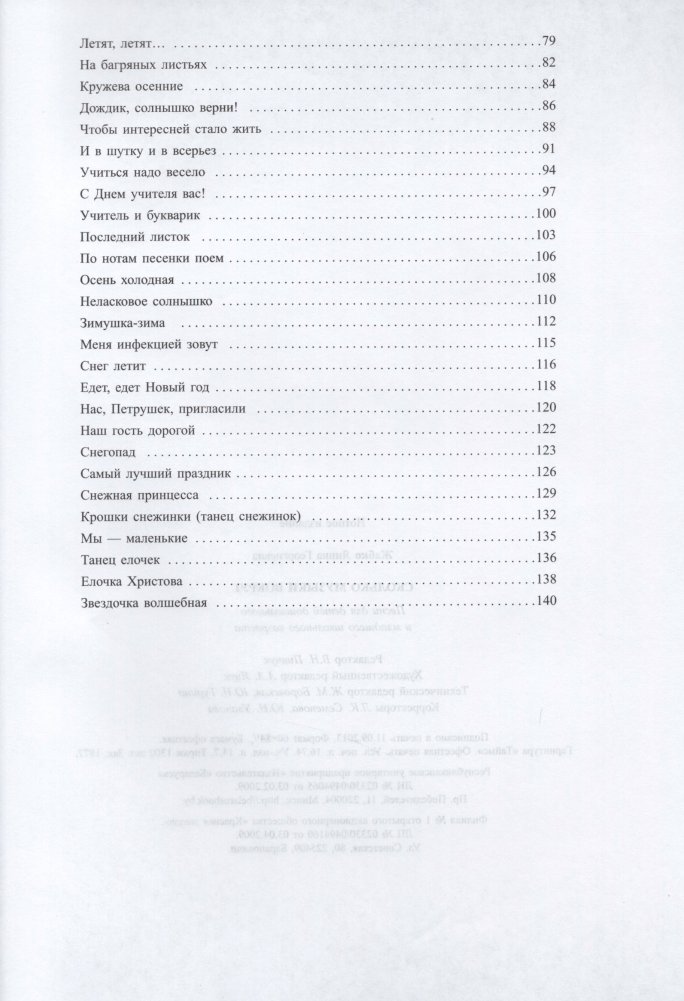 В книгу вошел песенный цикл произведений, глубоко и полно раскрывающий внутренний мир ребенка, помогающий ему познавать мир вокруг себя. Это познание осуществляется через картины и зарисовки природы, в ее неустанном движении по кругу: от весны до зимы. Мелодии песен ярки, выразительны, диапазон соответствует указанному возрасту.