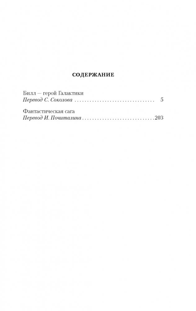 Билл, герой Галактики… Куда бы его ни бросила судьба — в воронку ли безумной войны с расой миролюбивых чинджеров, в ядовитые ли болота недружественной людям планеты Вениолы или на мрачные подземные уровни Гелиора, столицы империи, — отовсюду он выходит героем. А все началось с того, что простой деревенский парень с захолустной планетки Фигеринадон-2, уловками имперских вербовщиков угодивший в космический десант, случайно выпускает ракету и сбивает вражеский флагман. Терри Пратчетт назвал это произведение Гаррисона самым смешным романом, который существует в фантастике. В «Фантастической саге» предприимчивые голливудские кинодеятели, не имея ни денег, ни сценария, ни толковых актеров, отправляются на машине времени в суровые времена Средневековья, чтобы снять фильм о викингах — о том, как они открыли Америку. Действительно, зачем деньги, зачем сценарий, актеры и декорации, когда приходишь на все готовое?.. И «Билл — герой Галактики», и «Фантастическая сага» входят в золотой фонд мировой фантастики.