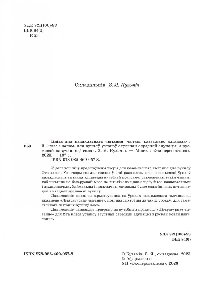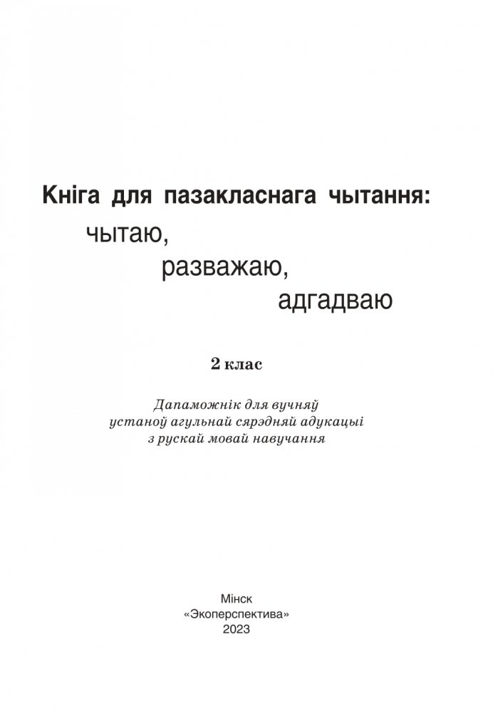 Кніга для пазакласнага чытання: чытаю, разважаю, адгадваю. 2 клас