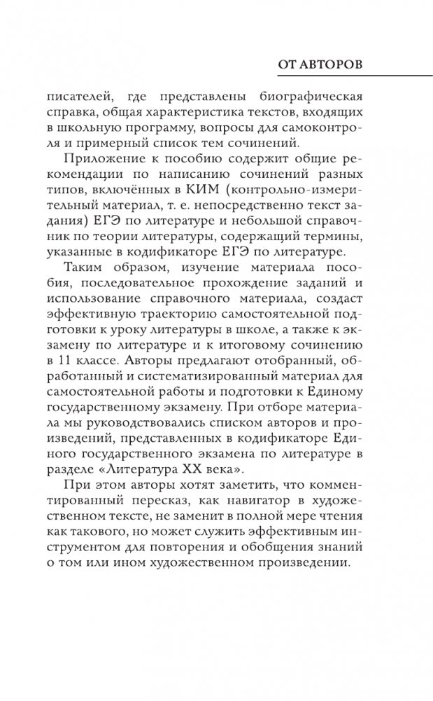 Предлагаемое пособие является универсальным приложением к любому школьному учебнику для 11 класса. Оно поможет учащимся вспомнить содержание произведения перед уроком, написать сочинение, подготовиться к контрольной работе и сдаче ЕГЭ.