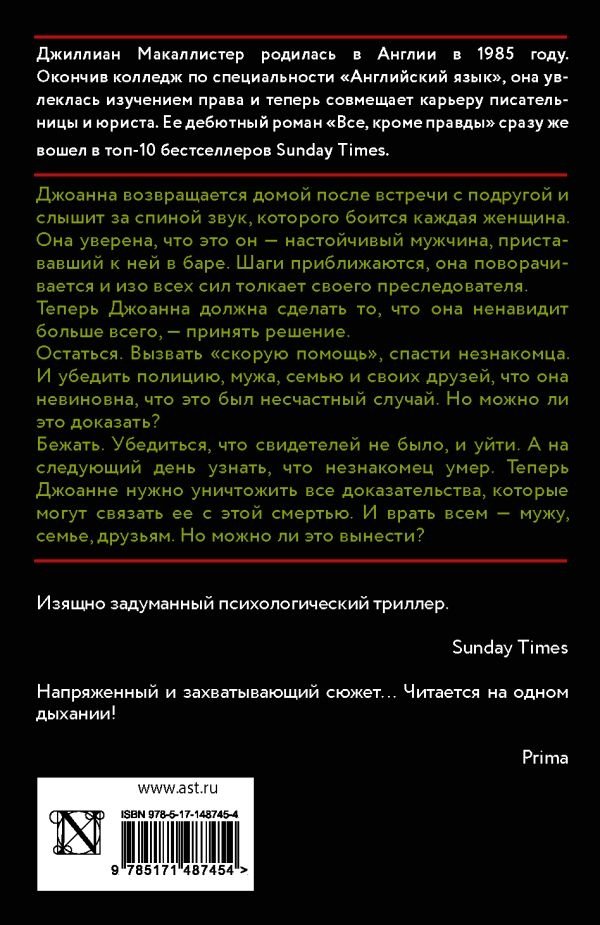 Бежать. Убедиться, что свидетелей нет, и уйти. А на следующий день узнать, что незнакомец умер. Теперь Джоанне нужно уничтожить все улики, которые могут связать ее с этой смертью. И врать всем – мужу, семье, друзьям. Но можно ли это вынести?