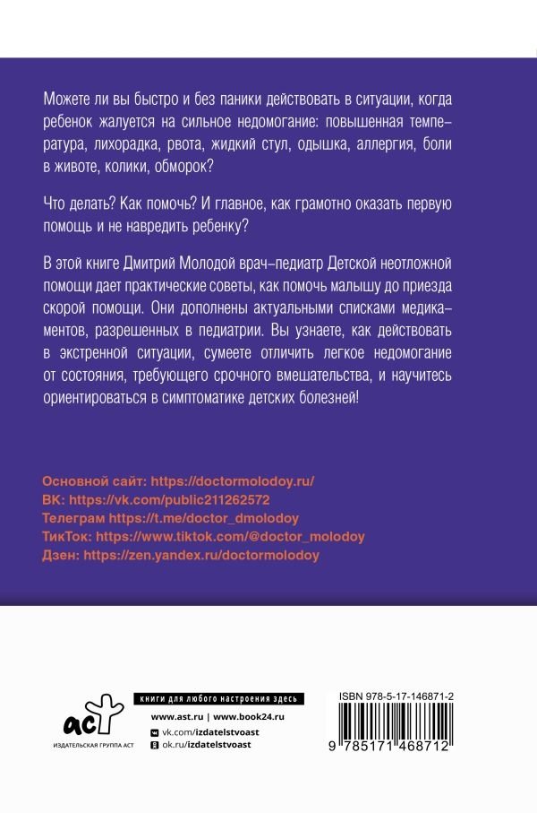 В этой книге Дмитрий Молодой, врач‑педиатр детской неотложной помощи, дает практические советы, как помочь малышу до приезда скорой помощи. Они дополнены актуальными списками медикаментов, разрешенных в педиатрии. Вы узнаете, как действовать в экстренной ситуации, сумеете отличить лёгкое недомогание от состояния, требующего срочного вмешательства, и научитесь ориентироваться в симптоматике детских болезней!