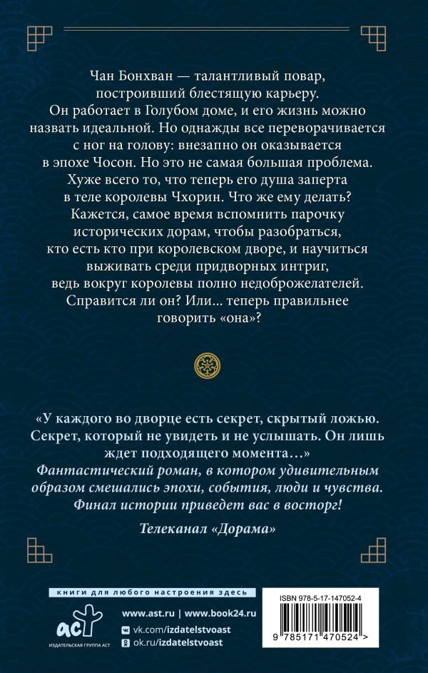 Он работает в Голубом доме, и его жизнь можно назвать идеальной. Но однажды все переворачивается с ног на голову: внезапно он оказывается в эпохе Чосон. Но это не самая большая проблема. Хуже всего то, что теперь его душа заперта в теле королевы Чхорин. Что же ему делать?