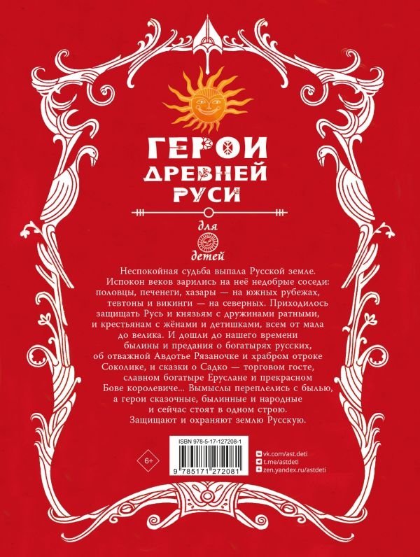 На Руси издавна умели за себя постоять, ценили смекалку, удачливость и силушку богатырскую. Да и как без этих качеств можно было прожить в Древней Руси, окружённой со всех сторон неприятелями. Самые любимые герои русского народа — богатыри, витязи и простые люди, которые не боятся вступаться за обездоленных и не робеют перед жестоким врагом. В книге собраны былины и предания о богатырях русских, об отважной Авдотье‑Рязаночке и храбром отроке Соколике, и сказки о Садко‑торговом госте, славном витязе Еруслане Лазоревиче и необыкновенном Бове‑королевиче... Пересказал их для вас писатель и поэт Леонид Яхнин, а нарисовала иллюстрации молодая и очень талантливая художница из Иркутска Анастасия Крапива/Кардашова.ф