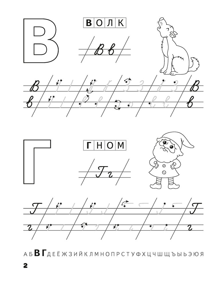 В издании представлены упражнения для отработки написания букв русского алфавита. Материал пособия окажет практическую помощь родителям и педагогам в работе по развитию у детей мелкой моторики и координированных действий руки, по формированию графического навыка письма. Ребёнок научится воспроизводить элементы букв, соблюдая при этом высоту и пропорции, правильный наклон.