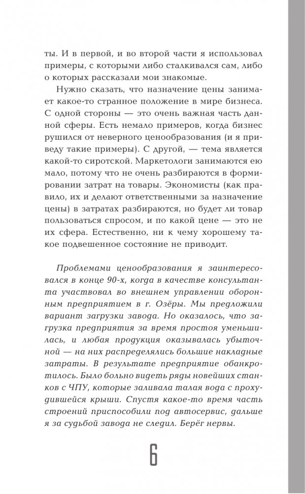 Из книги Дмитрия Окладникова вы узнаете, какие есть методы назначения цены и какие у них недостатки, как находить оптимальную цену и как на неё влияет срок годности и прочие ограничения, нужно ли бояться демпинга и что такое ценовая дискриминация, как использовать знания в этой сфере, чтобы выжить в кризис и не обанкротиться. И все это – в простой и понятной форме, с графиками в виде комиксов и небольшими шарадами.