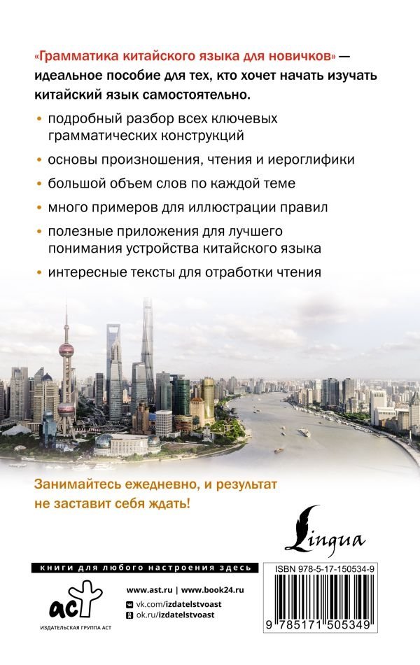 Данное пособие содержит 12 уроков, которые охватывают весь объем грамматики, лексики и иероглифики, необходимый для изучения на начальном уровне. Благодаря системной подаче материала, понятным объяснениям, наглядным таблицам и большому количеству примеров вы легко привыкнете к логике другого языка. Завершают издание приложения: справка по китайским членам предложения, таблица иероглифических ключей, таблица китайско-русской транскрипции Палладия, счетные слова и таблица глаголов.