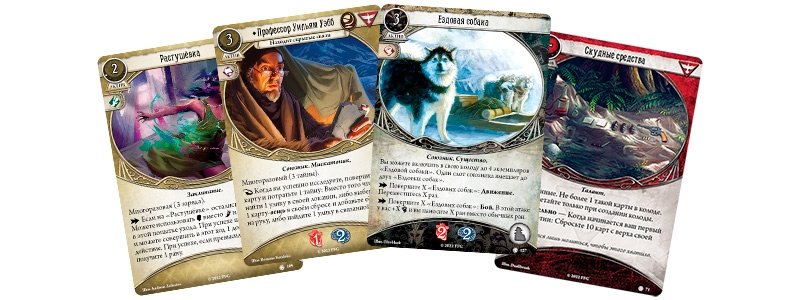 Игроки управляют действиями персонажей посредством своей колоды сыщика. Сценарии ведут кампании, предлагая интереснейшее приключение.