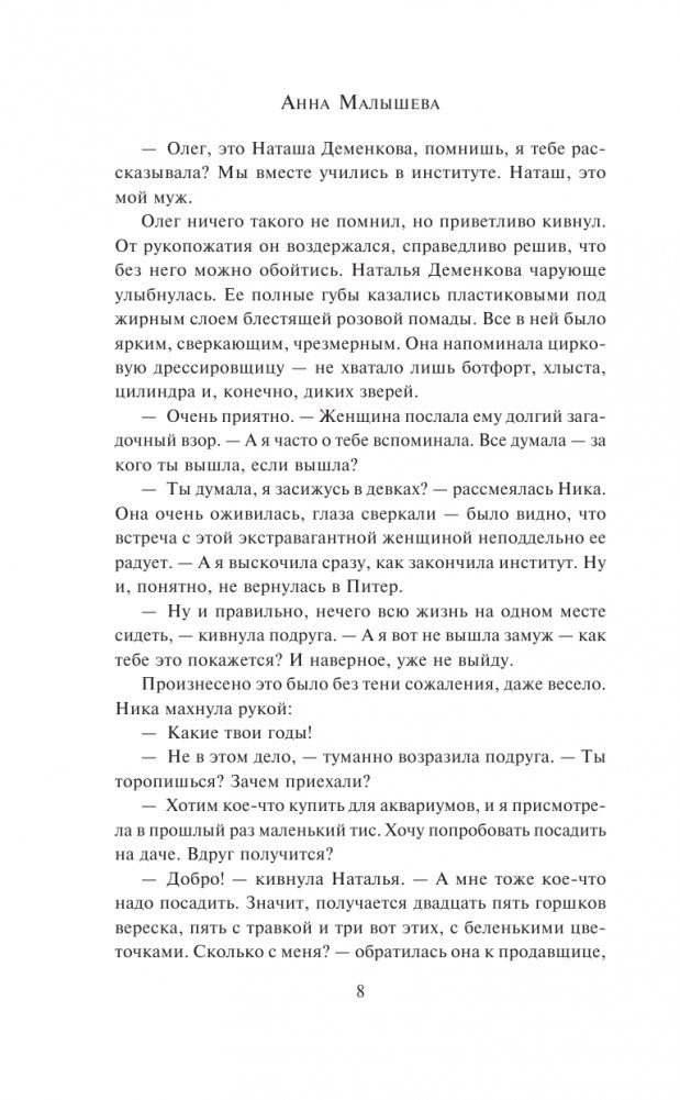 Что может быть невиннее, чем случайная встреча двух старых подруг? Что может быть интереснее, если одна готова говорить, а другая слушать? Молодая журналистка Ника узнает, что ее подруга Наталья вот уже пять лет служит компаньонкой у жены крупного банкира. Больше та женщина не общается ни с кем, даже с собственными детьми — она страдает душевным расстройством, и порой ведет себя странно... И поэтому ее нелепая, случайная смерть выглядит закономерной, и никто не стал бы искать виновных... если бы Ника не столкнулась с ней лицом к лицу вскоре после похорон и не догадалась о том, что "банкирша", как и ее компаньонка, тоже работала по найму...