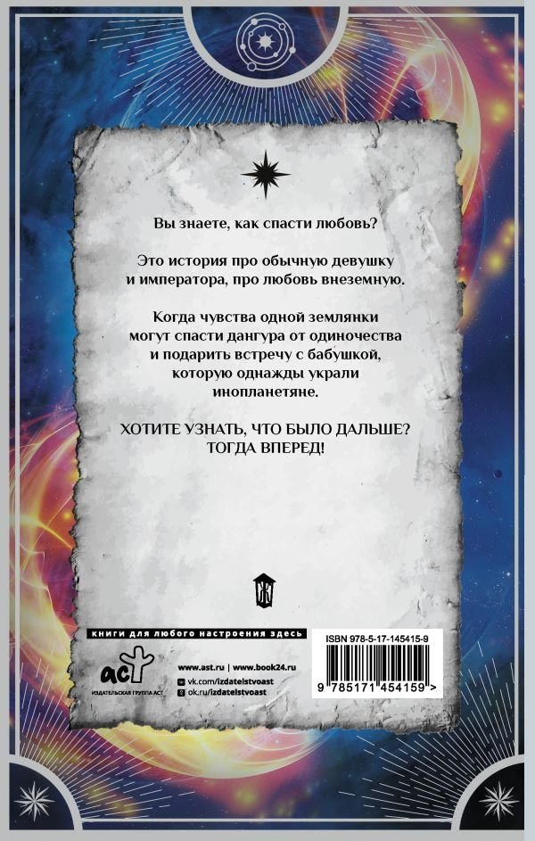 Вы знаете, как спасти любовь? Это история про обычную девушку и императора, про любовь внеземную. Когда чувства одной землянки, могут спасти дангура от одиночества и подарить встречу с бабушкой, которую однажды украли инопланетяне. Хотите узнать, что было дальше? Тогда вперед!