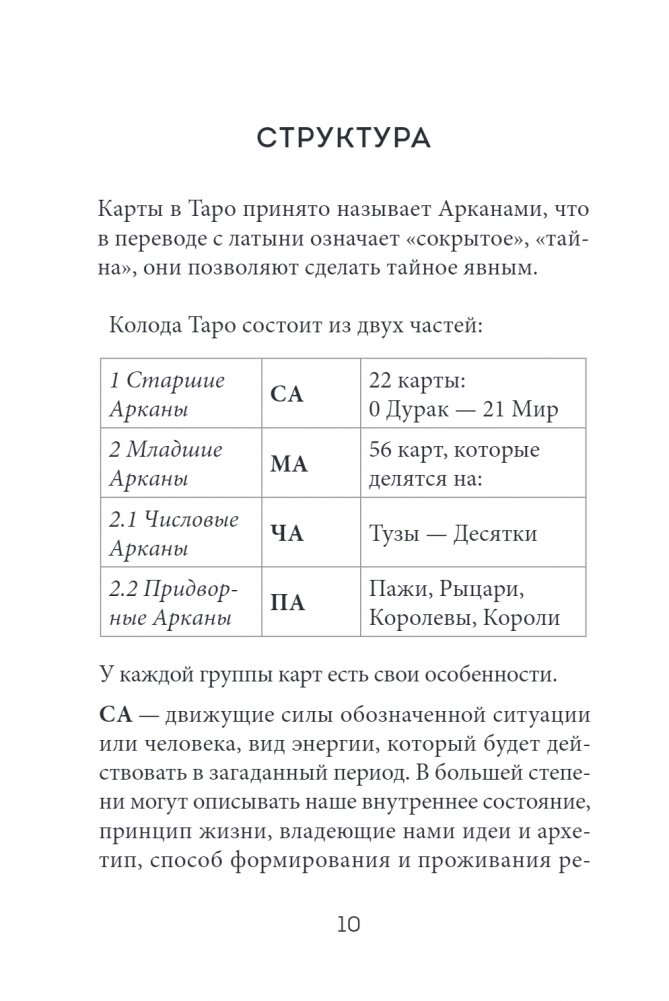 Простое и понятное руководство по картам Таро для начинающих от Анны Огински, руководителя учебного центра "Академия Ленорман", автора книг-бестселлеров. Здесь вы найдете все, чтобы познакомиться с картами Таро и самостоятельно приступить к гаданию: подробные толкования всех 78 карт колоды в прямом и перевернутом положении для разных сфер жизни, правила работы с колодой и базовые расклады, которые легко освоить и использовать. Руководство иллюстрировано колодой Артура Эдварда Уэйта и Памелы Колман-Смит – самой знаменитой и популярной колодой Таро.