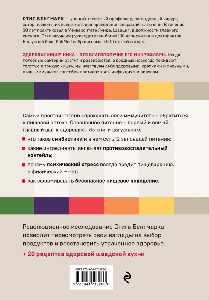 Стиг Бенгмарк приоткрывает читателям завесу тайны о функциях и деятельности самого длинного органа нашего организма. Вред антибиотиков и польза правильного питания звучат настолько знакомо, что кажется, будто ничего нового сказать об этом уже невозможно. Но это ошибка. В своей книге автор описывает 12 столпов здорового кишечника, которые помогут сохранить его здоровым на долгие годы.