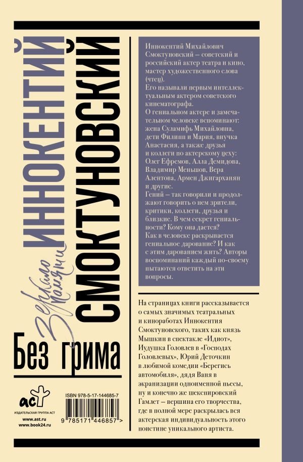 Это уникальная книга воспоминаний родных и близких Иннокентия Михайловича Смоктуновского, которые дополнены личными мемуарами великого артиста — создана с огромной любовью.