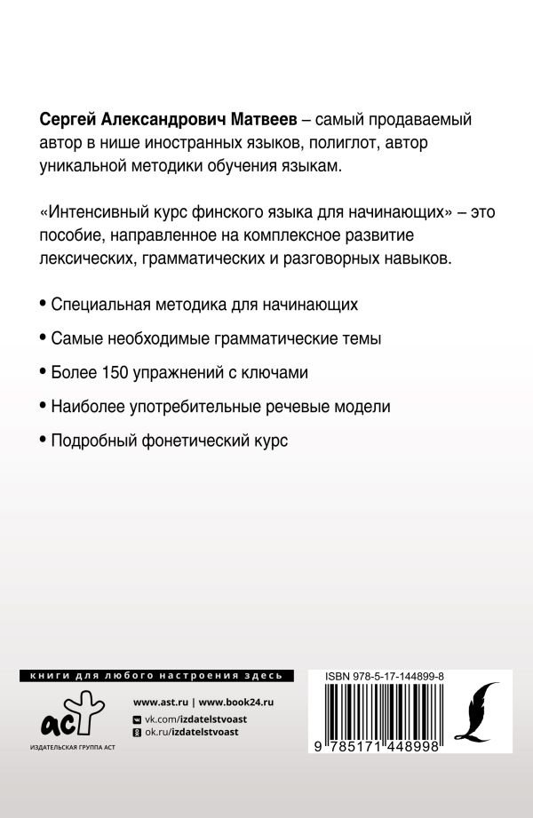 Книга адресована всем, кто хочет овладеть финским языком, не слишком затягивая процесс изучения, и готов к интенсивным самостоятельным занятиям.