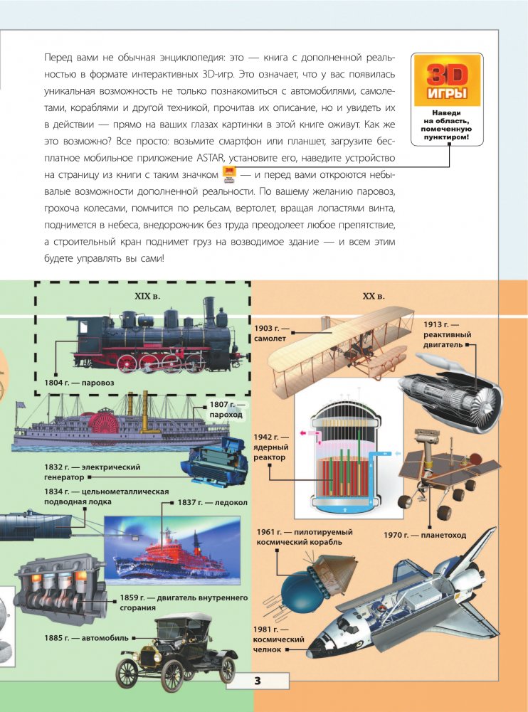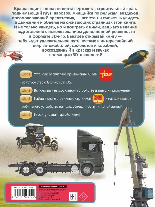 Первая энциклопедия с дополненной реальностью познакомит тебя с автомобилями, самолетами и кораблями, которые ты увидишь в объеме, движении и звуковом сопровождении.