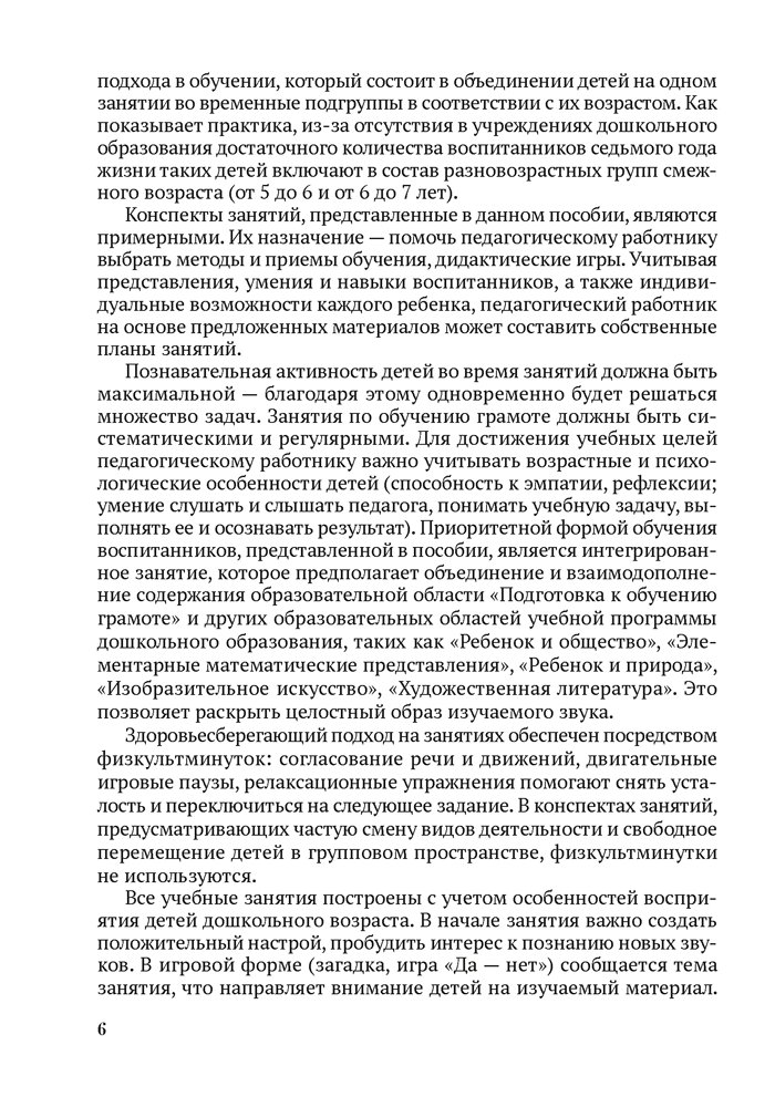 Представленные в пособии конспекты занятий по обучению грамоте детей старшего дошкольного возраста соответствуют учебной программе и объединяют содержание нескольких образовательных областей. Цикл из 37 занятий разработан с применением технологии ОТСМ-ТРИЗ-РТВ и рассчитан на учебный год.
