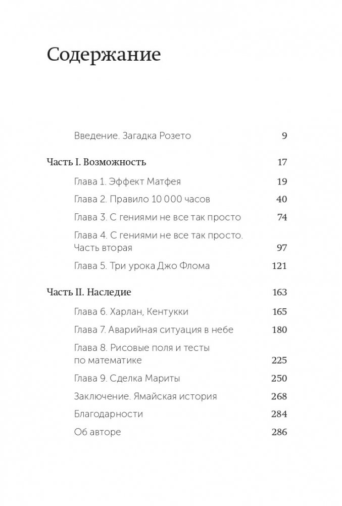 Малкольм Гладуэлл — первый, кто обнаружил скрытые законы за тем, что всегда казалось исключительно волей случая, и изложил их в этой книге. Эти законы объясняют, почему выдающиеся хоккеисты рождаются, как правило, в январе и практически никогда — в октябре, почему азиатским школьникам математика дается легче, чем другим, почему, чтобы стать престижным нью-йоркским адвокатом, нужно быть евреем.