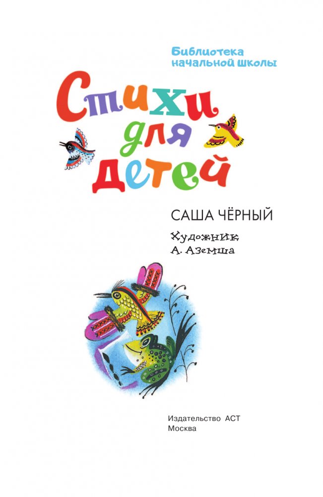 Саша Чёрный – знаменитый поэт Серебряного века, сатирик, журналист и переводчик. Его настоящее имя – Александр Михайлович Гликберг. В книгу вошли самые лучшие стихотворения для детей Саши Чёрного, которые высоко оценил К. И. Чуковский, – "Про кота", "Когда никого нет дома", "Приставалка" и другие. Поэт создал целый мир детства – яркий, весёлый озорной, но вместе с тем тёплый и уютный. Иллюстрации выдающего художника Александра Аземши отлично дополняют замечательные стихи.