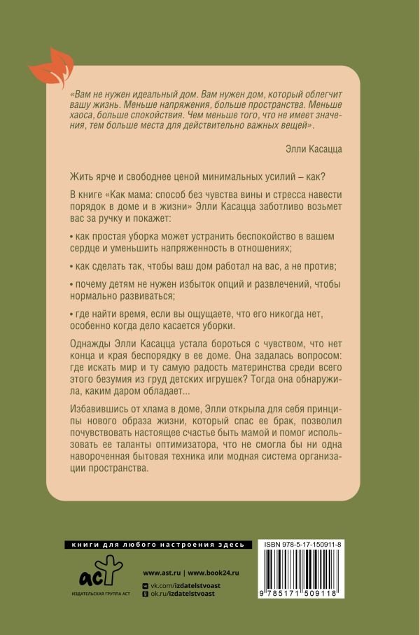 В книге "Как мама: способ без чувства вины и стресса навести порядок в доме и в жизни" Элли Касацца заботливо возьмет вас за ручку и покажет: