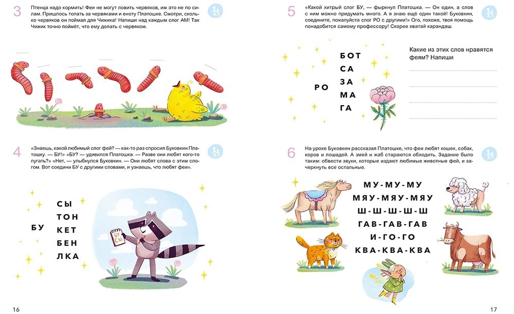 Развивающая тетрадь для знакомства с буквами и освоения азов письма и чтения. Под обложкой — множество интересных словесных задачек, которые ребенку предстоит выполнить вместе с енотом Платошкой и профессором Буковкиным. Юные любительницы фей будут в восторге!