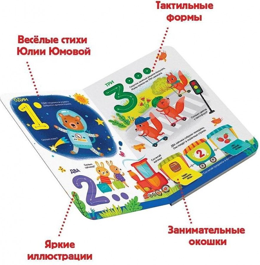 Книги из серии «Играй и учись» от торговой марки Malamalama станут лучшими друзьями малыша и помогут ему учиться и узнавать новое с удовольствием! Окошки с фактами, забавные стишки, тактильные дорожки и объёмные иллюстрации приятно разнообразят чтение. Вместе с книгой «Счёт» ваш малыш сможет легко и весело сможет научиться считать до 10-ти, потренировать мелкую моторику, память и фантазию. Открывайте книги серии «Играй и учись» — получайте знания и заряд положительных эмоций!