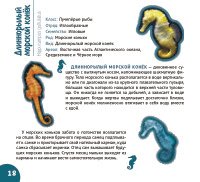 Книга — знакомство с обитателями подводного мира. На страницах вы узнаете, сколько весит сердце синего кита, как беззащитный морской конёк спасается от хищников, нападают ли пираньи на людей, чем опасны скаты и многое-многое другое про обитателей водных просторов нашей планеты.
