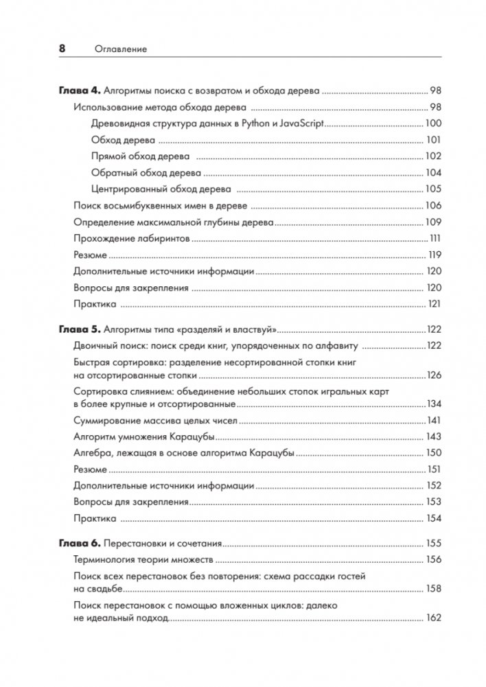 Книга «Рекурсивная книга о рекурсии» содержит примеры кода на языке Python и JavaScript, которые иллюстрируют основы рекурсии и проясняют фундаментальные принципы всех рекурсивных алгоритмов. Из книги вы узнаете о том, когда стоит использовать рекурсивные функции (и, главное, когда этого не нужно делать), как реализовывать классические рекурсивные алгоритмы, часто обсуждаемые на собеседованиях, а также о том, как рекурсивные методы помогают решать задачи, связанные с обходом дерева, комбинаторикой и другими сложными темами.