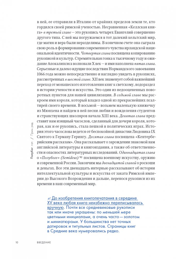 Гораздо больше, чем просто книга о манускриптах. Это необыкновенное и прекрасно иллюстрированное исследование средневекового мира через двенадцать рукописей от одного из ведущих мировых экспертов, британского академика Кристофера де Амеля. Отчасти книга о путешествиях, отчасти детективная история, отчасти беседа с читателем, «Манускрипты, изменившие мир» позволяет нам познакомиться с некоторыми из величайших произведений искусства в нашей культуре и по-новому взглянуть на историю и на то, как мы получаем знания. От самой ранней книги средневековой Англии до несравненной Келлской книги и древнейшей рукописи Кентерберийских рассказов, эти манускрипты повествуют об эволюции духовной культуры и искусства на протяжении целого тысячелетия.