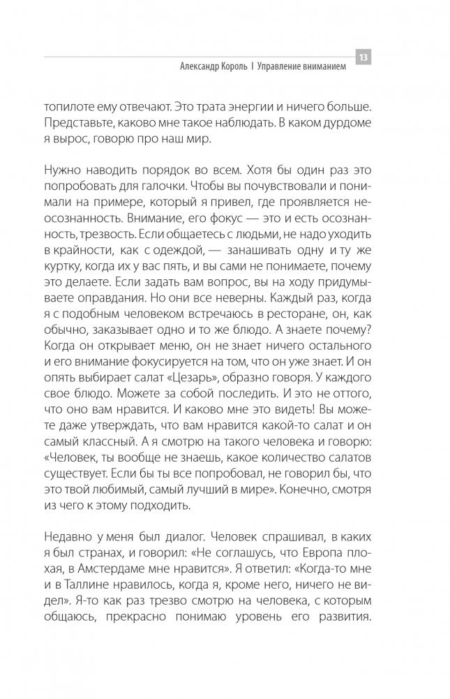 В этой книге автор описал примеры, в которых можно ясно увидеть, что все в нашей жизни построено на внимании. Благодаря вниманию люди влюбляются, болеют и выздоравливают. Внимание используется во всем. От вашего внимания зависит ваша жизнь. Ведь внимание — это и есть Вы