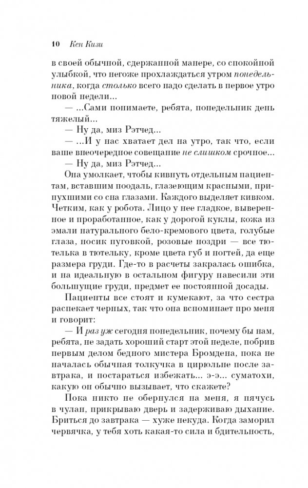 Культовый роман, который входит в сотню самых читаемых по версии «Таймс». Вышел в шестидесятых, в яркое время протеста нового поколения против алчности, обезличивания, войн и насилия. Либерализм против традиционализма, личность против устоев. Роман потрясает глубиной, волнует, заставляет задуматься о жизни, о справедливости, о системе и ее непогрешимости, о границах безумия и нормальности, о свободе, о воле, о выборе.