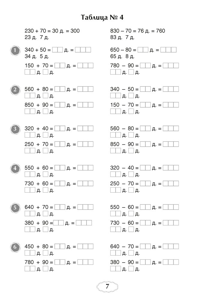 Пособие позволит научиться быстро и правильно решать примеры и задачи различных типов, проконтролировать усвоение материала, снизить нагрузку при записывании примеров и задач, сэкономить время на уроке.