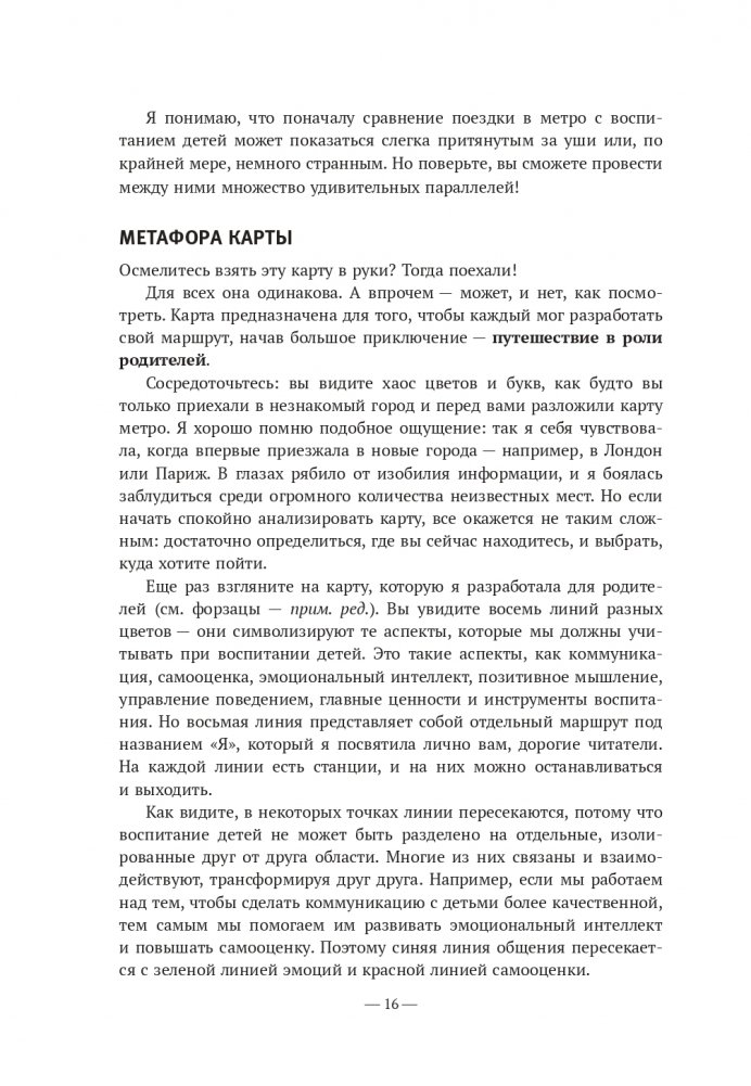 В конце каждого из разделов, рассматривающего тот или иной аспект воспитания, вы найдете список наиболее важных тезисов по данной теме, сочиненную автором историю и предложения по совместной родительско-детской активности, которые являются отличным дополнением к теоретическому материалу.