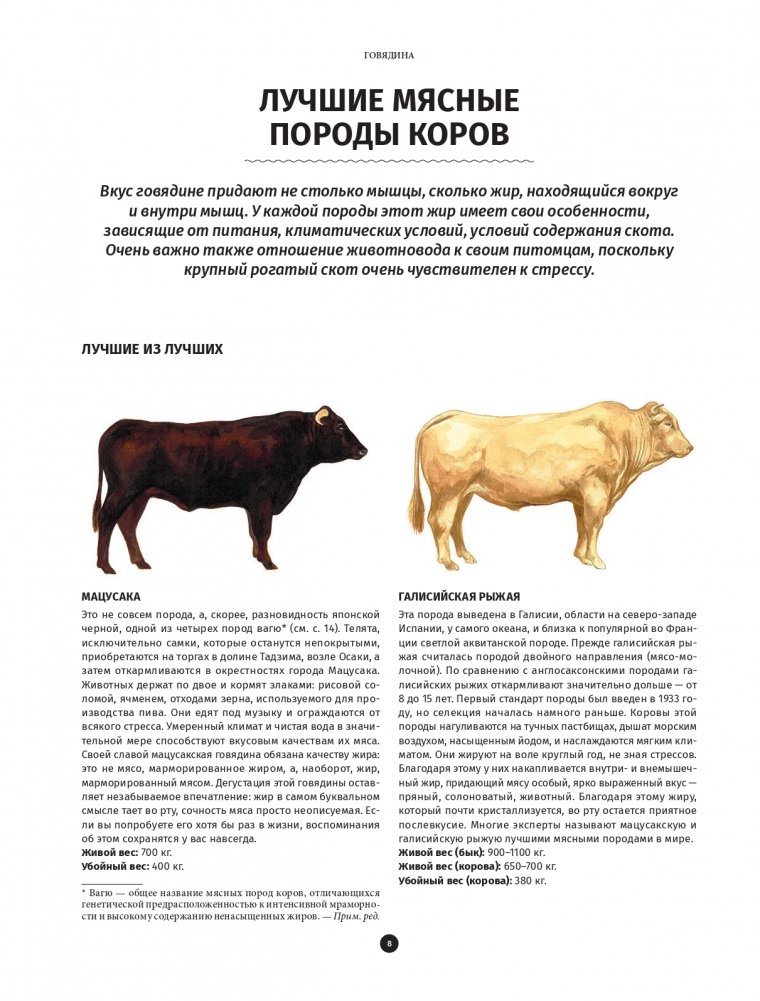 Книга об искусстве приготовления и дегустации мяса. Она раскрывает секреты лучших мировых заводчиков и мясников, опираясь на новейшие научные исследования. Текст украшает более 450 акварельных иллюстраций. Это издание для эстетического удовольствия и настоящего гурманского наслаждения.