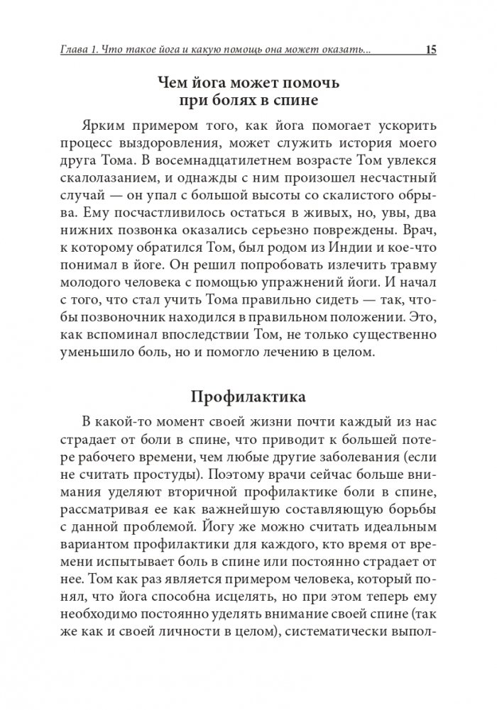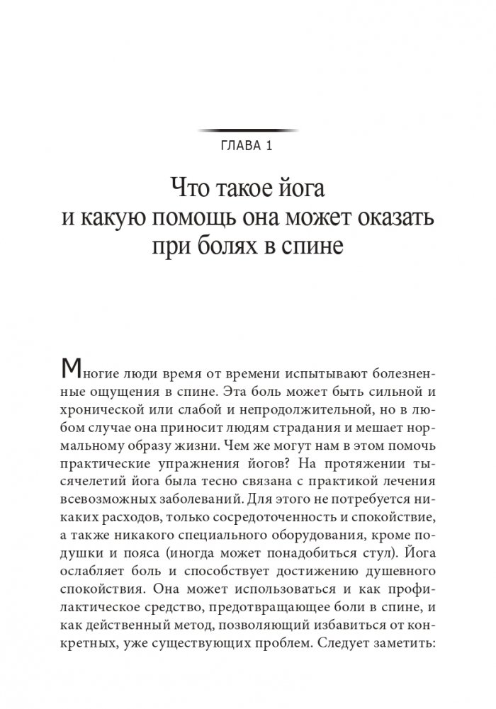 Это пособие познакомит читателей с различными причинами болей в спине и с лечебными позами йоги. Люди любого возраста, даже те, кто совсем незнаком с йогой, без труда выполнят эти упражнения. В зависимости от степени и характера боли, предлагаемые позы йоги, детально описанные и проиллюстрированные в книге, помогут вам разработать индивидуальную практику для лечения болей в спине.