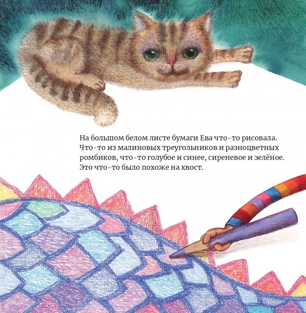 На большом белом листе бумаги Ева что-то рисовала. Что-то из малиновых треугольников и разноцветных ромбиков, что-то голубое и синее, сиреневое и зелёное... Это что-то было похоже на хвост…