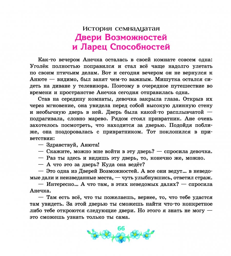 Юные любители фантастики, чудес и волшебства! Эта книга написана специально для вас. Главная героиня девочка Анюта, плюшевый Мишка, воронёнок Уголёк, Мышка и другие персонажи историй совершают путешествия в Мир Снов, в Космос, на планету Познающего Сознания, в неизведанные фантастические миры, где с ними происходят удивительные приключения.