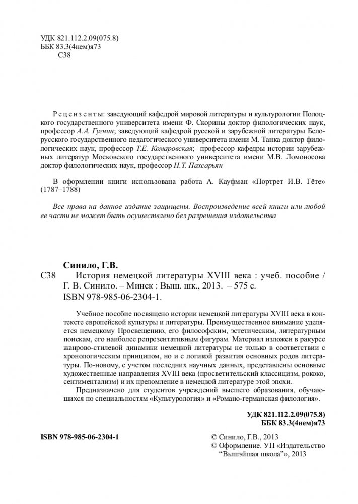 Излагается история немецкой литературы XVII в. в контексте европейской культуры и литературы. Преимущественное внимание уделяется немецкому Просвещению, его философским, эстетическим, литературным поискам, его наиболее репрезентативным фигурам. Материал изложен в ракурсе жанрово-стилевой динамики немецкой литературы, не только в соответствии с хронологическим принципом, но и логикой развития основных родов литературы. По-новому, с учетом последних научных данных, представлены основные художественные направления XVII в. (просветительский классицизм, рококо, сентиментализм) и их преломление в немецкой литературе этой эпохи.