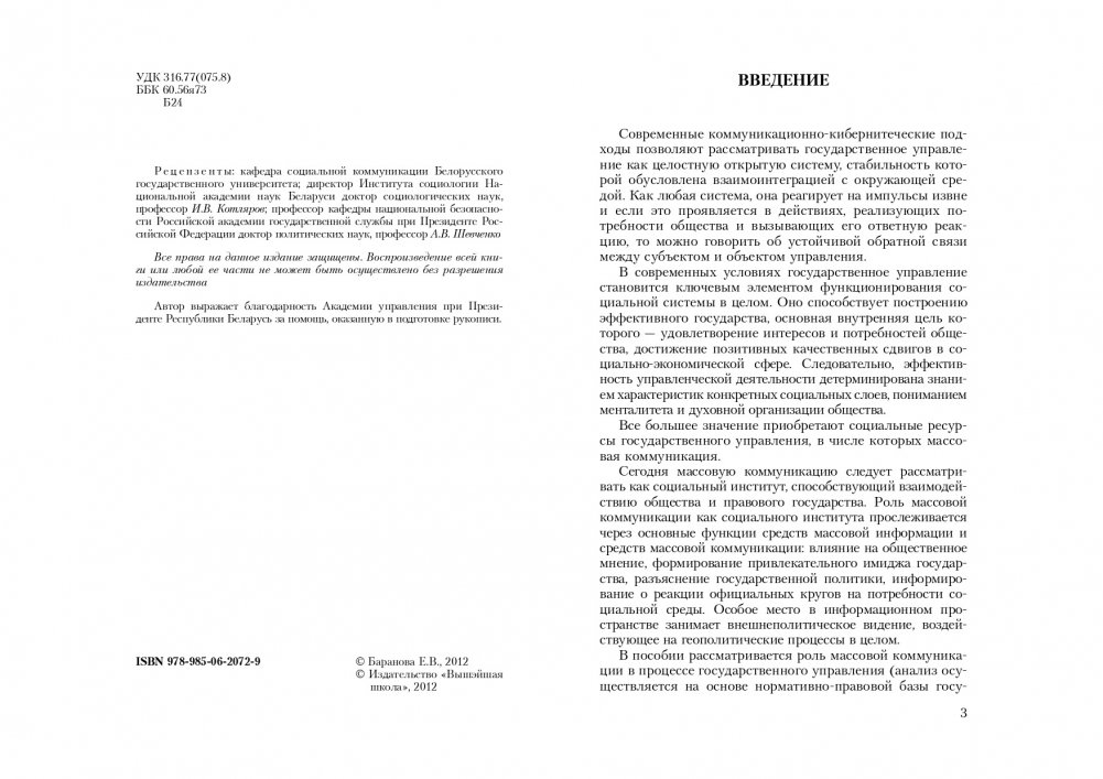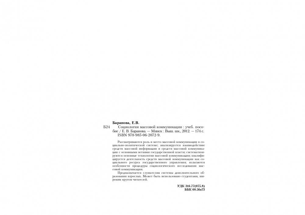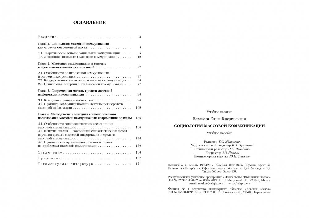 Рассматриваются роль и место массовой коммуникации в социально-политической системе; анализируется взаимодействие средств массовой информации и средств массовой коммуникации с основными ветвями государственной власти; систематизируются основные технологии массовой коммуникации; квалифицируется деятельность средств массовой коммуникации как социального ресурса госудорственного управления; излагаются особенности процедуры социологического исследования массовой коммуникации.