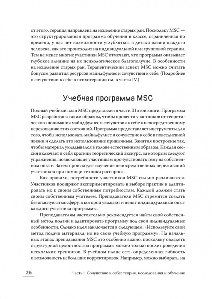 Часто ли вы сочувствуете себе? Осознаете те трудности, с которыми вам приходится сталкиваться? Умеете ли вы подбадривать и поддерживать себя. Кристин Нефф и Кристофер Гремер, авторы метода осознанного самосострадания, предлагают новый подход к установлению поддерживающих и заботливых отношений с собой. В книге вы найдете описание теории и подтверждающих ее исследований, а также уникальную программу, по которой можно обучать этому методу. Интересные примеры, взятые из сессий, помогают переформулировать привычные самоуничижительные мысли в поддерживающие, критическое само отношение в ресурсное.