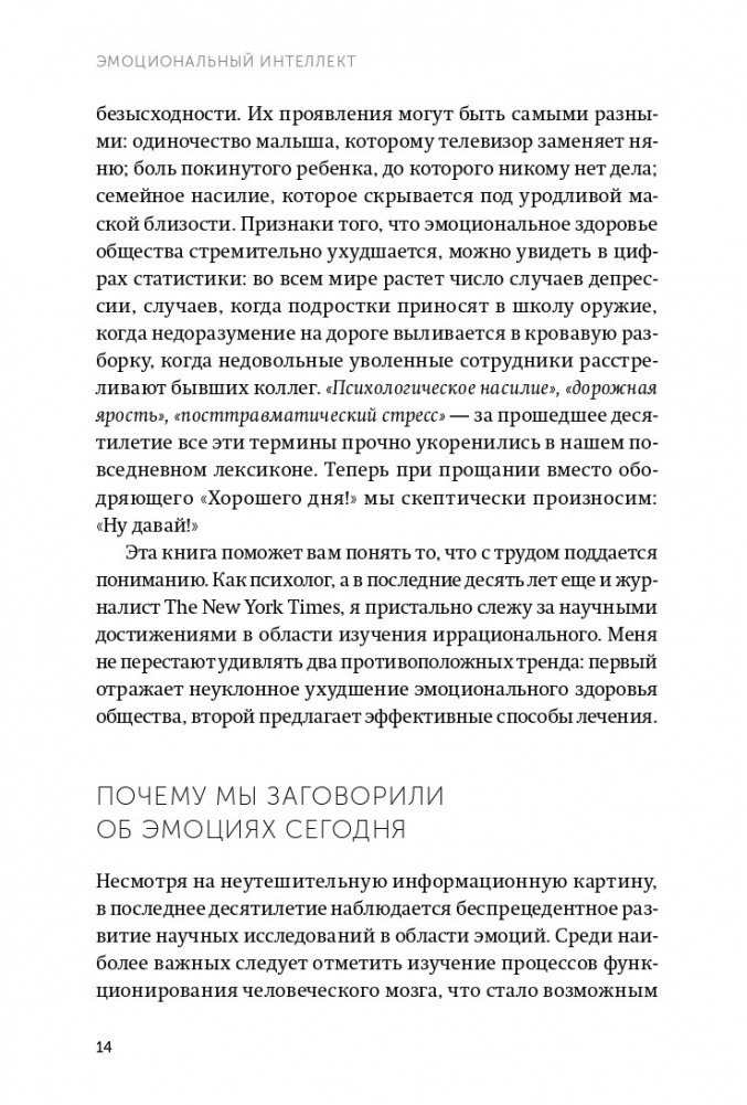 Подробный анализ проявлений эмоционального интеллекта, множество примеров, в том числе из жизни автора.