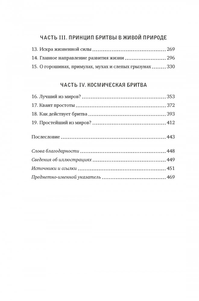Много веков назад принцип бритвы Оккама изменил наш взгляд на мир, показав, что простота является основополагающим принципом Вселенной. Ученый-биолог Джонджо Макфадден прослеживает историю научных открытий на протяжении нескольких столетий, от геоцентрического космоса до квантовой механики и ДНК. По мнению Макфаддена, жизнь могла появиться только благодаря максимальной простоте, и фундаментальный закон Вселенной есть не что иное, как космологическая форма естественного отбора, который всегда благоприятствует выживанию простейших элементов. Трактуя по-новому историю науки и происхождение Вселенной, эта книга в корне меняет наше представление о нас самих и об окружающем мире.
