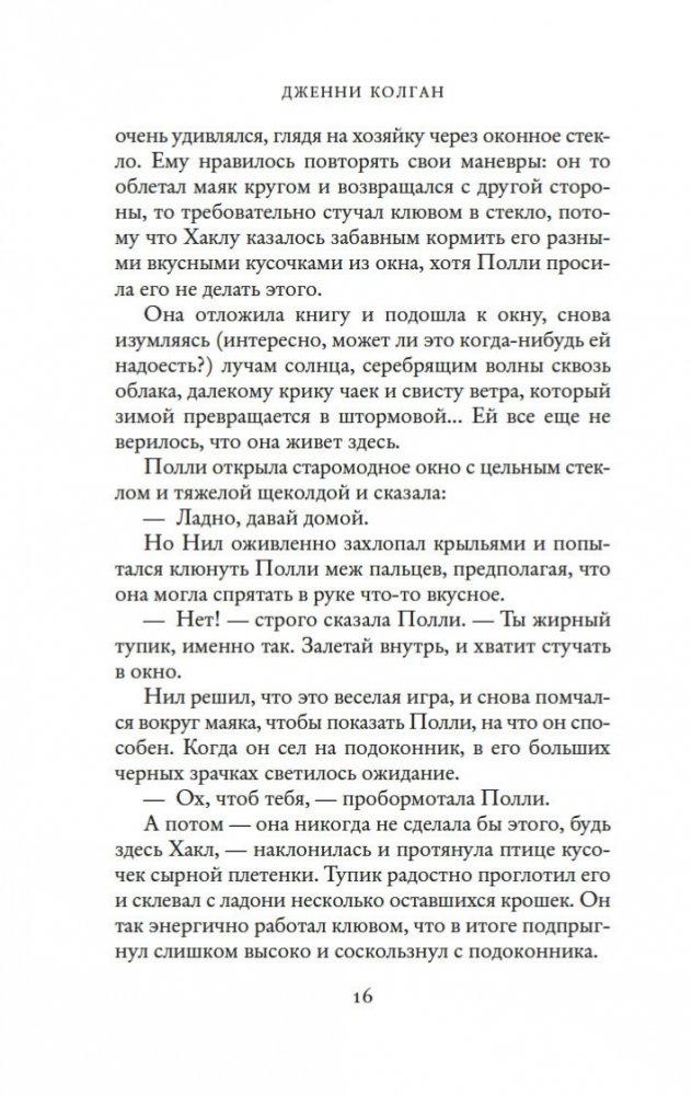 Как можно жить на краю, нет, за краем земли — на приливном островке, продуваемом всеми ветрами? Вдали от больших городов и привычных развлечений? Но такие робинзоны находятся — они приезжают сюда, навсегда влюбляются в Корнуолл и остаются, чтобы жить, работать и быть счастливыми. Одна из них — Полли Уотерфорд, быть может не избалованная везением, однако не зарывшая в землю свой талант: она умеет печь изумительно вкусный хлеб. У нее есть любимая работа, любимый человек и любимый домашний питомец (вообще-то, это морская птица), и все трое живут на маяке (другого жилья на острове не нашлось). Но как это часто бывает, идиллия не длится долго — в маленькой пекарне, где работает Полли, меняется владелец, и ей указывают на дверь. Ведь она совершенно не умеет экономить на качестве продуктов! Обитатели маяка переживают трудные времена и придумывают план спасения. Но чтобы его осуществить, придется расстаться — возможно, надолго. И вот, когда им наконец удается шаг за шагом приблизиться к цели, наступает очень славный, удачный, погожий день, не предвещающий ничего плохого... Плюс потрясающие рецепты от автора!