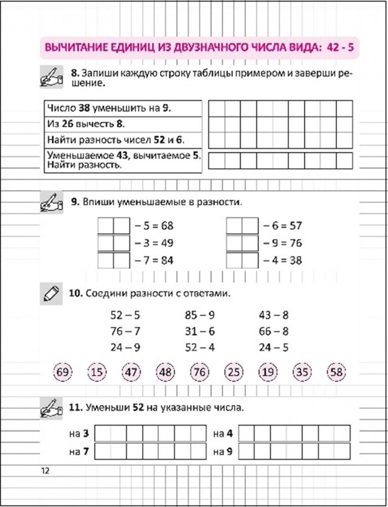 Тетрадь-тренажёр разработана для тренировки навыков устного счёта и помогает освоить вычитание в пределах 100 с переходом через десяток.