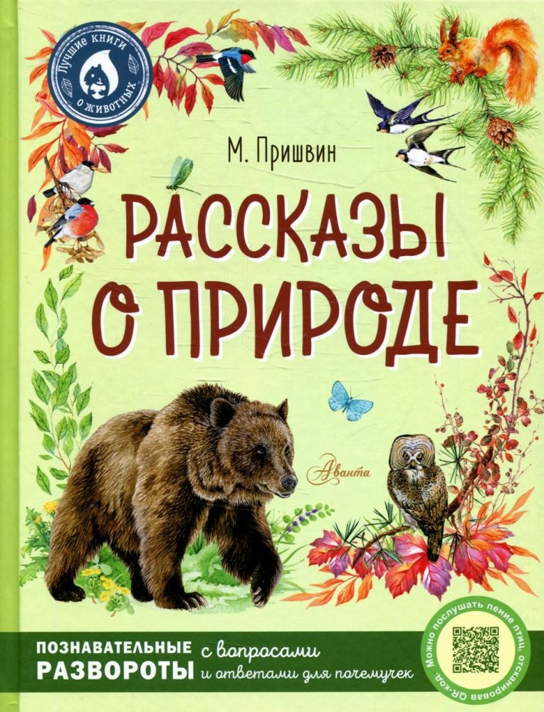 Михаила Пришвина называют «певцом русской природы». Часто бывая в лесу, на прогулке или охоте, он подмечал привычки и повадки лесных птиц и зверей, отмечал красоту растений, рассказывал, какое богатство окружает человека — настоящая «кладовая солнца с сокровищами жизни». В книге «Рассказы о природе» собраны познавательные рассказы русского классика, которые проходят по программе в школе. Вы узнаете: какие животные впадают на зиму в спячку? Где водится снежный барс? Правда ли, что у каждого зверя и птицы в лесу есть свои этажи? Когда открываются и закрываются цветки ноготков, белой кувшинки, цикория? Как поёт тетерев? Послушать песни птиц можно, отсканировав QR-коды на страницах книги.