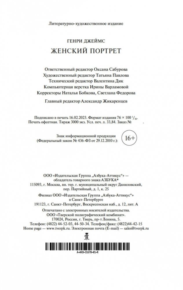 Англо-американский прозаик Генри Джеймс (1843–1916) — признанный классик мировой литературы, мастер психологического анализа, блестящий стилист и новатор, автор более двадцати романов («Послы», «Крылья голубки», «Золотая чаша», «Европейцы» и др.); перу Джеймса принадлежит также более ста новелл и рассказов, пьесы, трехтомная автобиография, путевые и критические очерки. Родившись в Нью-Йорке, писатель провел большую часть жизни в Старом Свете, преимущественно в Англии, где и умер, приняв за год до смерти британское подданство. Усвоив уроки Бальзака, Готорна, Ибсена и Тургенева, Генри Джеймс и сам оказал заметное влияние на всю психологическую прозу XX века, не случайно его называют предшественником таких писателей, как Конрад, Пруст и Вирджиния Вулф. «Женский портрет» принадлежит к числу наиболее значимых произведений Генри Джеймса и признан «одним из величайших романов, написанных на английском языке». По определению автора, «Женский портрет» — это роман о женщине, бросающей вызов своей судьбе. В основу сюжета легла история молодой американки, с тонкой и благородной натурой, прелестной, внутренне независимой и любознательной, которая прибывает в Европу, имея твердое убеждение, что мир полон неиссякаемых возможностей, а женское счастье далеко не исчерпывается удачным замужеством… В 1968 году по мотивам романа был снят мини-сериал, его сюжет также лег в основу фильма Джейн Кэмпион «Портрет леди» (1996) с Николь Кидман и Джоном Малковичем в главных ролях.