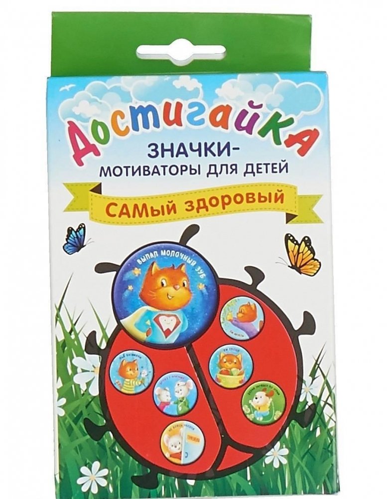 Комплект красочных значков для мотивации ребенка к заботе о себе, активности и полезному питанию.