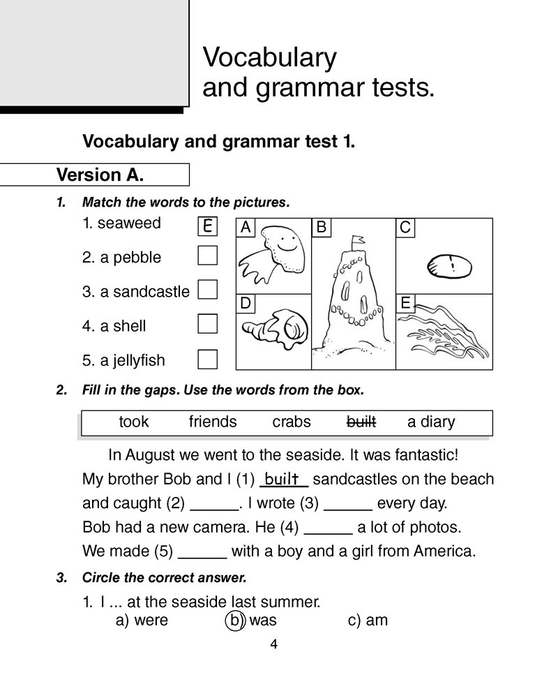 Данный сборник содержит множество разнообразных тестов, которые охватывают все основные темы, изучаемые в четвертом классе. Это позволяет ученикам оценить свой уровень владения английским языком и определить области, которые требуют дополнительного изучения.