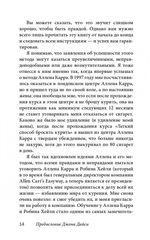 «Легкий способ» Аллена Карра стал самым успешным методом избавления от никотиновой зависимости и теперь широко используется для исцеления самых разных расстройств и зависимостей, от алкоголизма и наркомании до игромании и аэрофобии. Этот метод уже помог миллионам людей изменить свою жизнь к лучшему. Он поможет и вам.